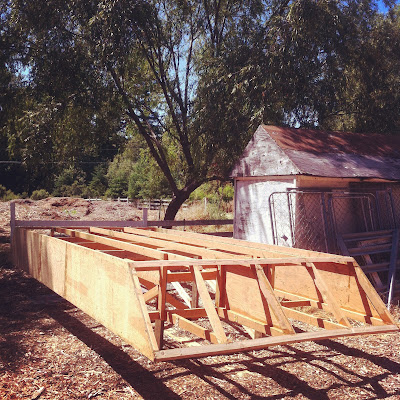 Earlier when we were making the pieces for the stringers we trimmed a bunch of edges off of 2x4s. Now we got to use the table saw to make some really weird-shaped boards.