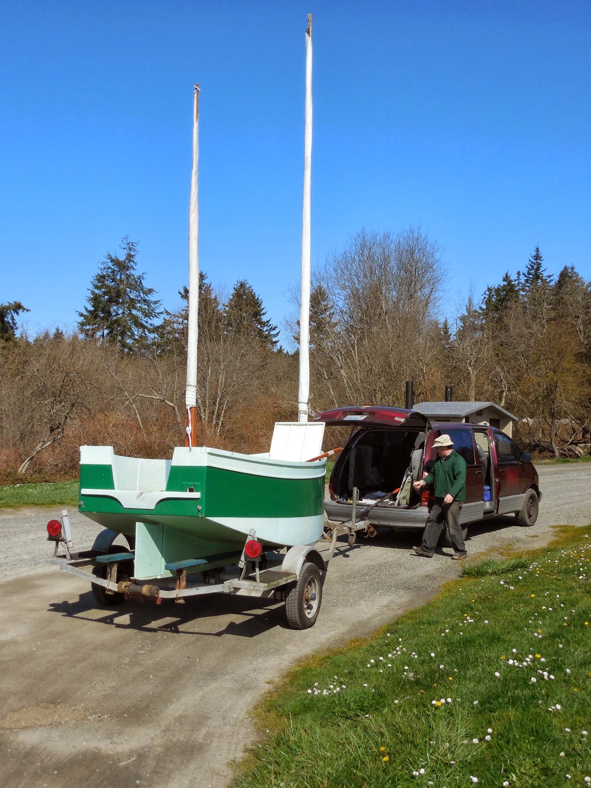The skipper looks pleased. Ive never known Bolgers little square boats fail to bring a smile to the person at the tiller.